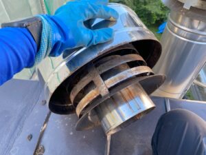 今回はコーヒー専門店にて焙煎用として使用している煙突のトップ部分の清掃です。