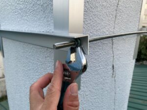 まずはクラックにコーキングを充填し、雨水の侵入を確実に防ぎます。 - 金物による補強作業