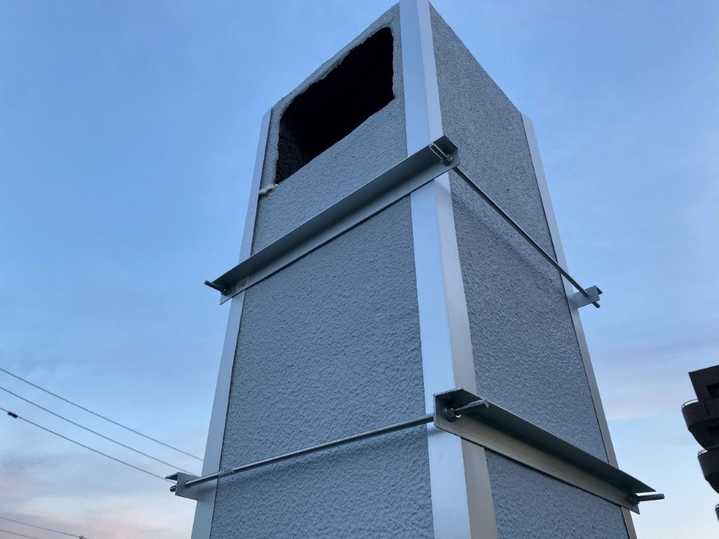 これにより煙突の倒壊リスクを大幅に軽減できます。 - 強度確認と仕上げ