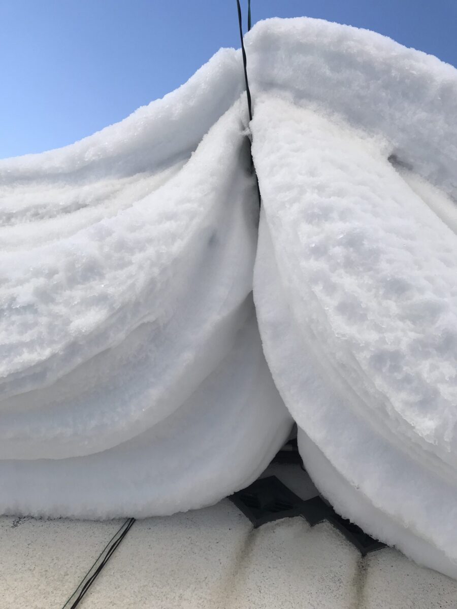 現場に到着して驚いたのは、軒先から大きくせり出した〝雪庇(せっぴ)〟の巨大さです。