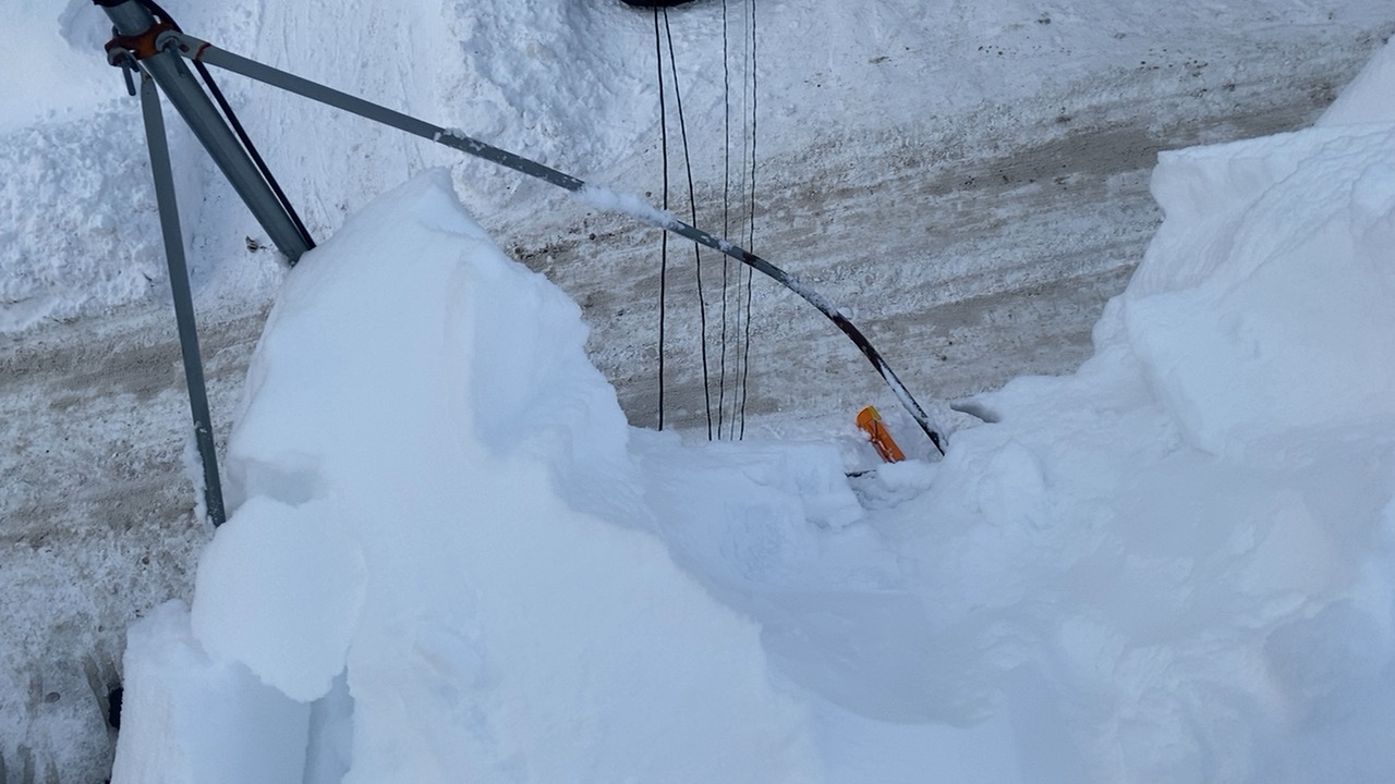驚異の圧力。金属製アンテナをも折り曲げる雪の重量