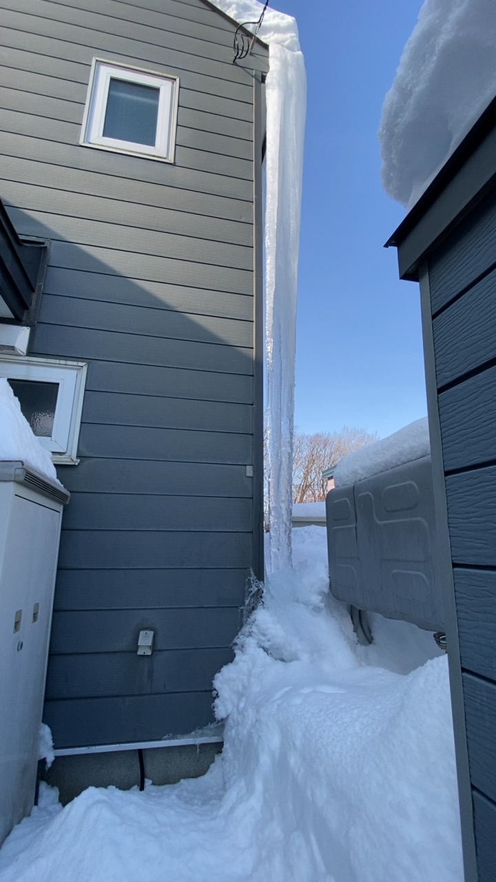 【衝撃の現場】屋根から地面まで。全長8メートルの巨大氷柱が出現