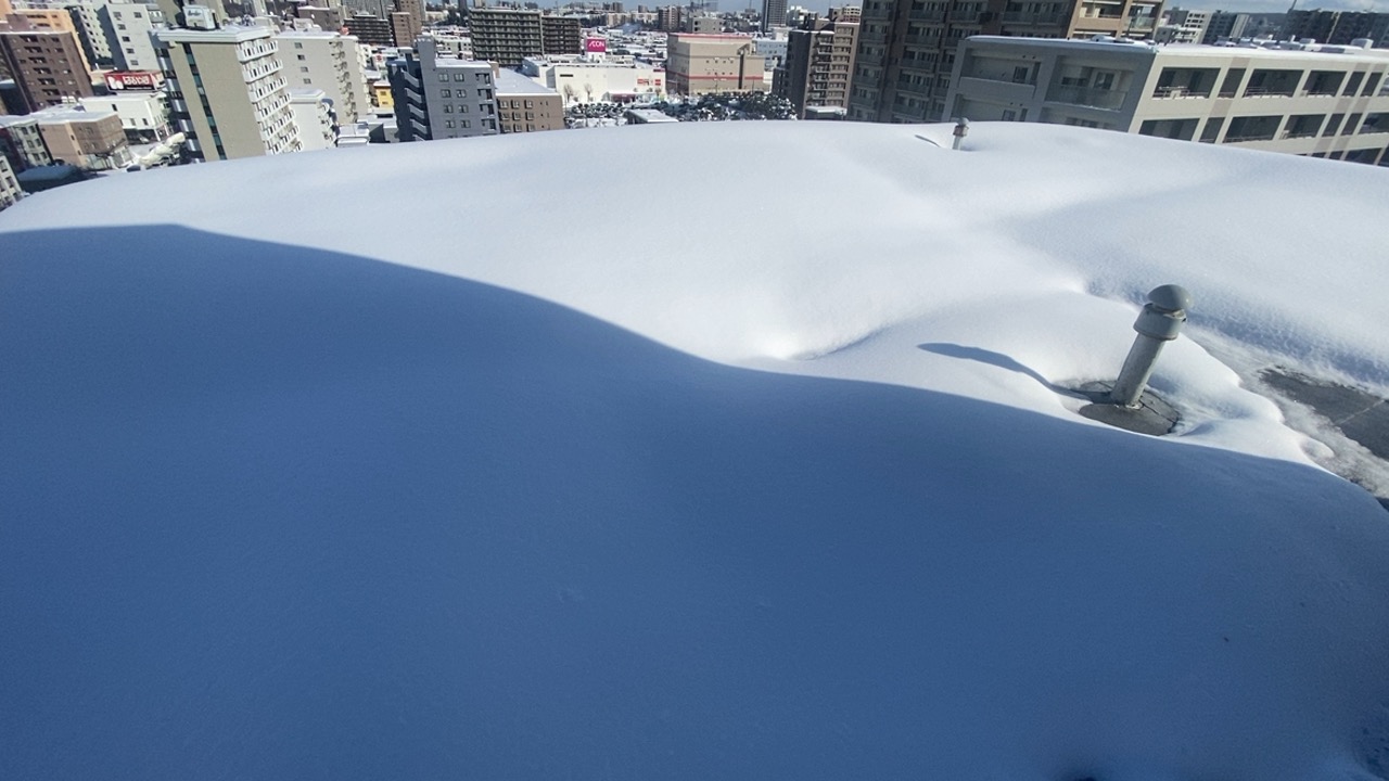 札幌市豊平区平岸にて、地上10階建て・高さ約30メートルの高層マンションでの雪庇(せっぴ)除去作業を行いました。この高さから雪が落下すれば、たとえサッカーボール程度の大きさでも、物置の屋根を凹ませ、人の命を奪う凶器に変わります。今回、便利屋七道が採用した「雪を一切下に落とさない」という超難易度の特殊工法を、現場の臨場感とともに詳しくレポートします。