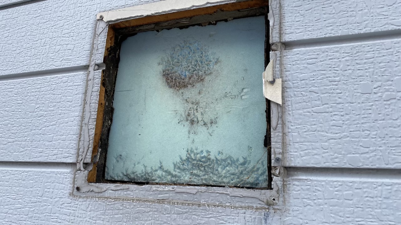 北広島市は雪深い時期もあり、屋根からの落雪による外壁設備の破損が少なくありません。今回お伺いしたお宅でも、プラスチック製の換気フードが経年劣化と雪の衝撃によって原型を留めないほど粉々になっていました。