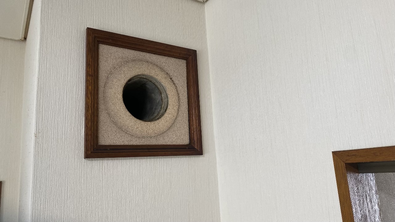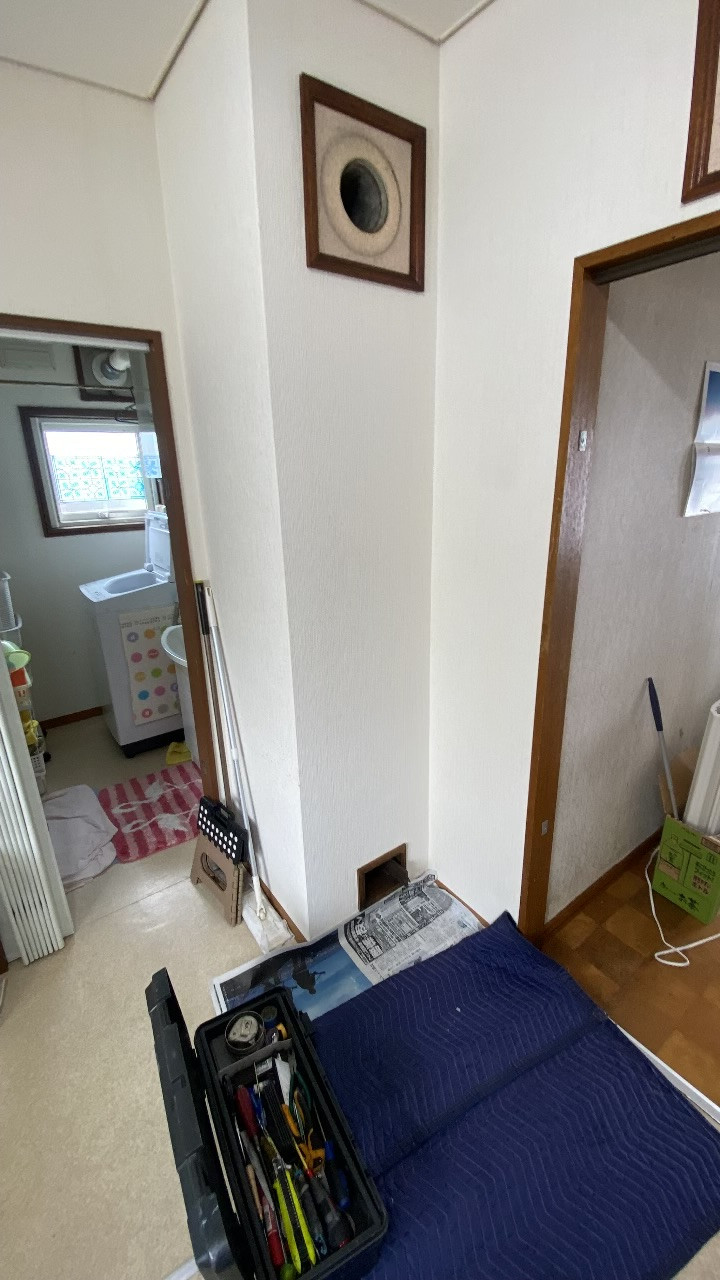 お客様が事前に外してくださっていた煙突穴。ここから鳥が室内に飛び出してくることもあるため、慎重に確認します。
