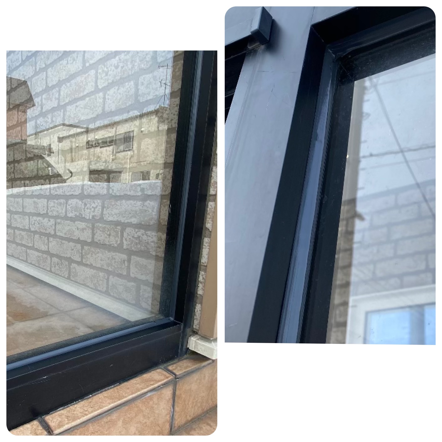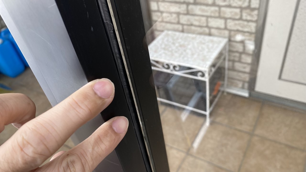 パッキンが痩せて隙間ができています。こうなるとガラスの固定力が弱まり、落下の危険性も出てきます。