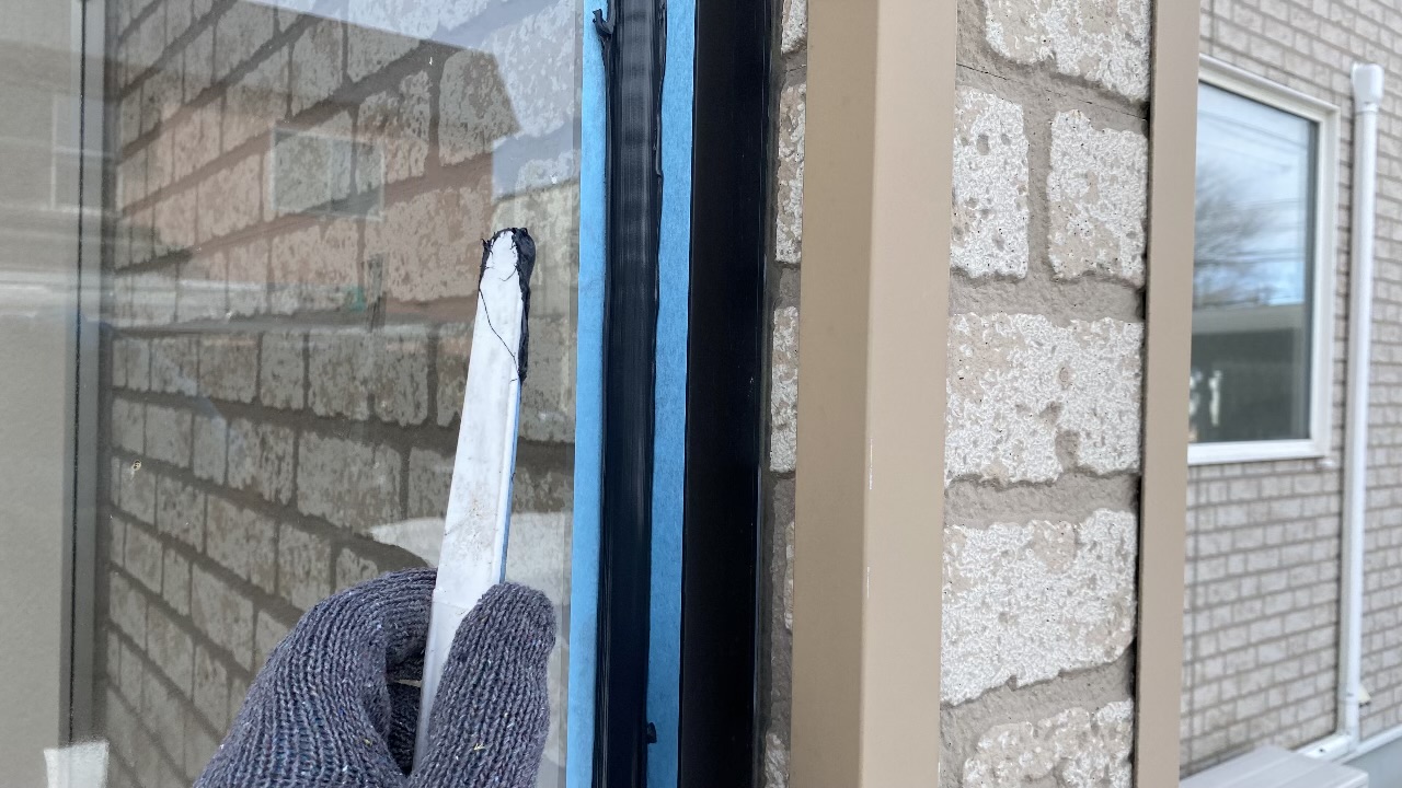 3月の札幌はまだ気温が低いため、コーキングが完全に乾くには丸一日ほどかかります。乾燥を待って、ガラスのガタつきは完全におさまりました。