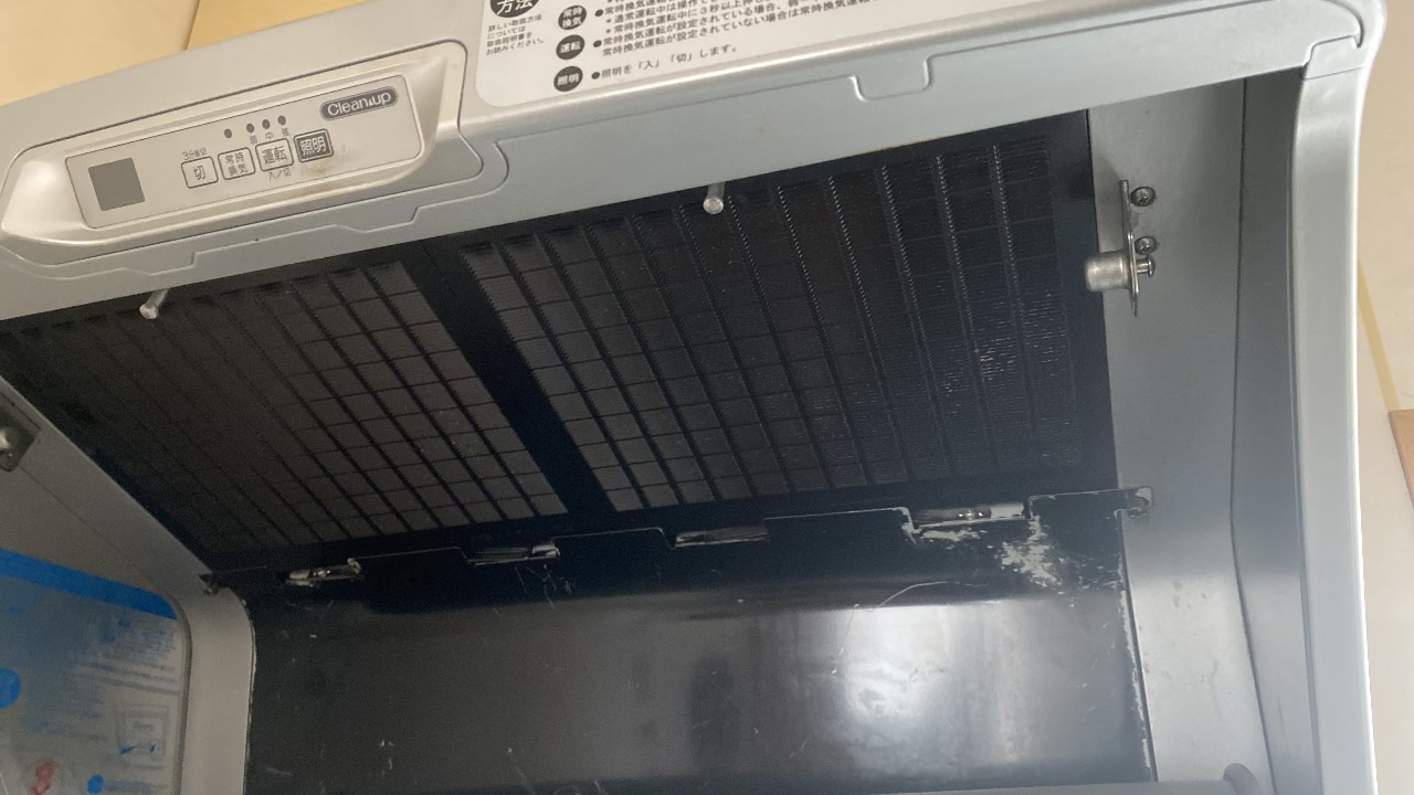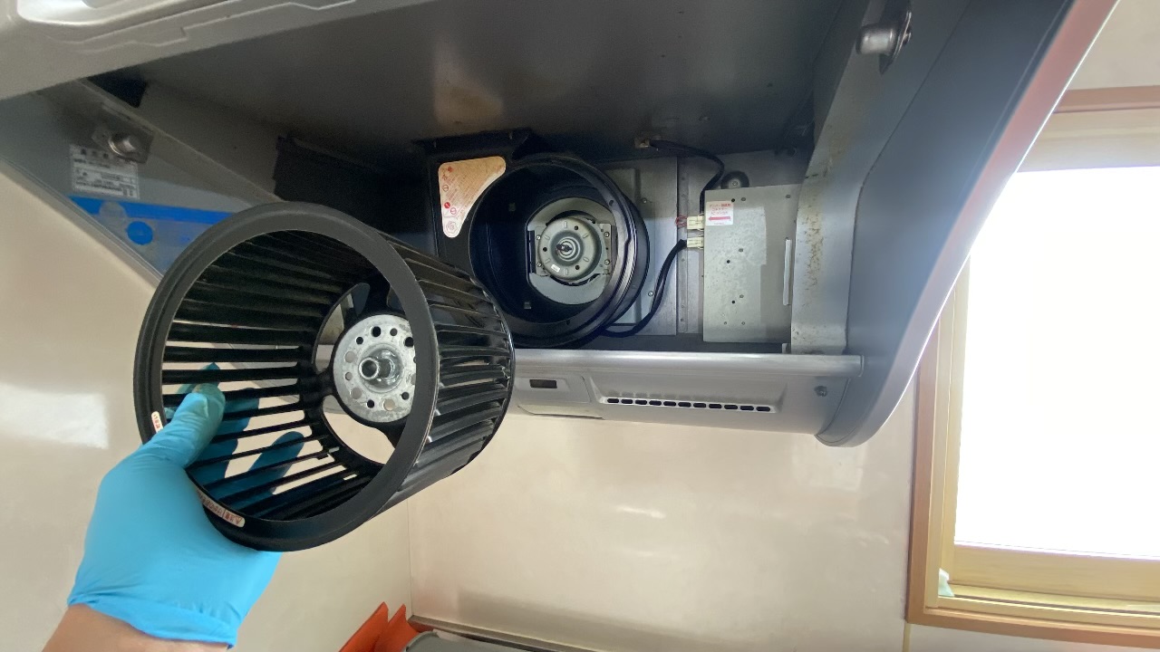 キッチンの換気扇は、家の中でも最も掃除のハードルが高い場所。特にファン(シロッコファン)は分解が必要なため、数年放置してしまうことも珍しくありません。今回もフィルターには埃と油が混ざり合った「茶色のヘドロ」がべったりと付着していました。