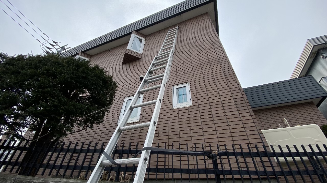 通常、高い場所の修理には「足場」が必要になりますが、足場を組むだけで数万~十数万円という高額な費用がかかることも珍しくありません。今回は、便利屋七道が得意とする「梯子(はしご)による高所作業」で、コストを抑えつつ安全に施工した様子をレポートします!