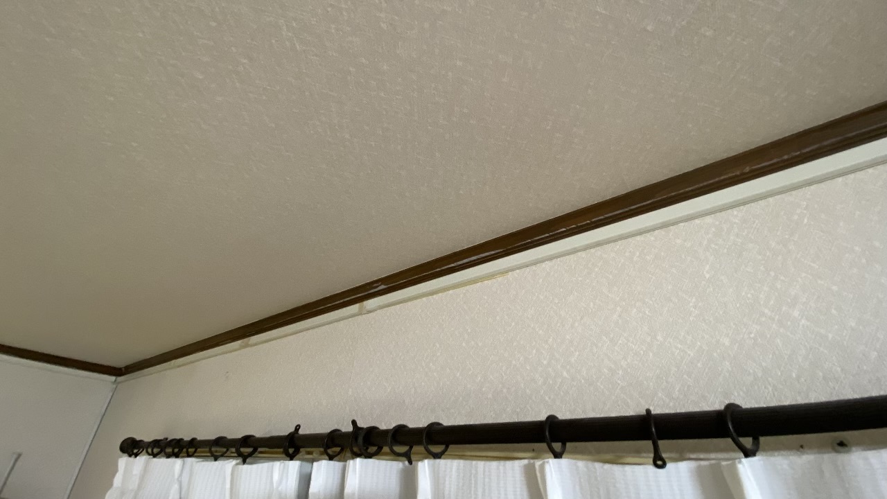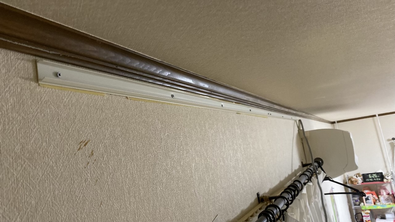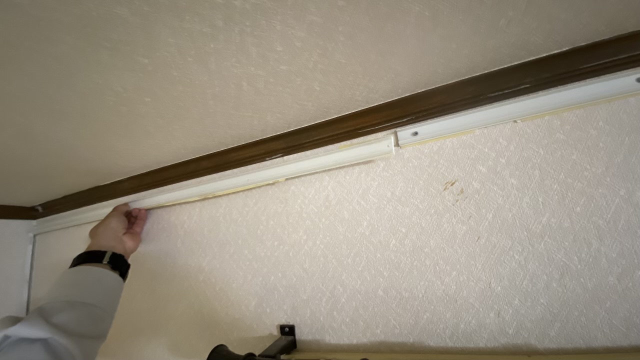 現場に到着すると、天井付近の角に合わせていたはずのモールが完全に剥がれ落ち、空中で宙ぶらりんになっていました。