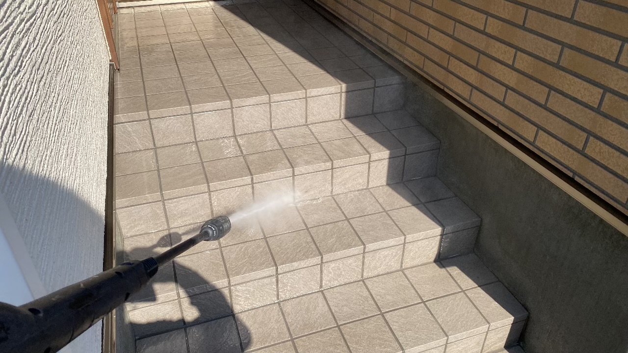 - 圧倒的な洗浄力:手作業では届かないタイルの細かな凹凸や目地の奥の汚れを、水の力で弾き飛ばします。