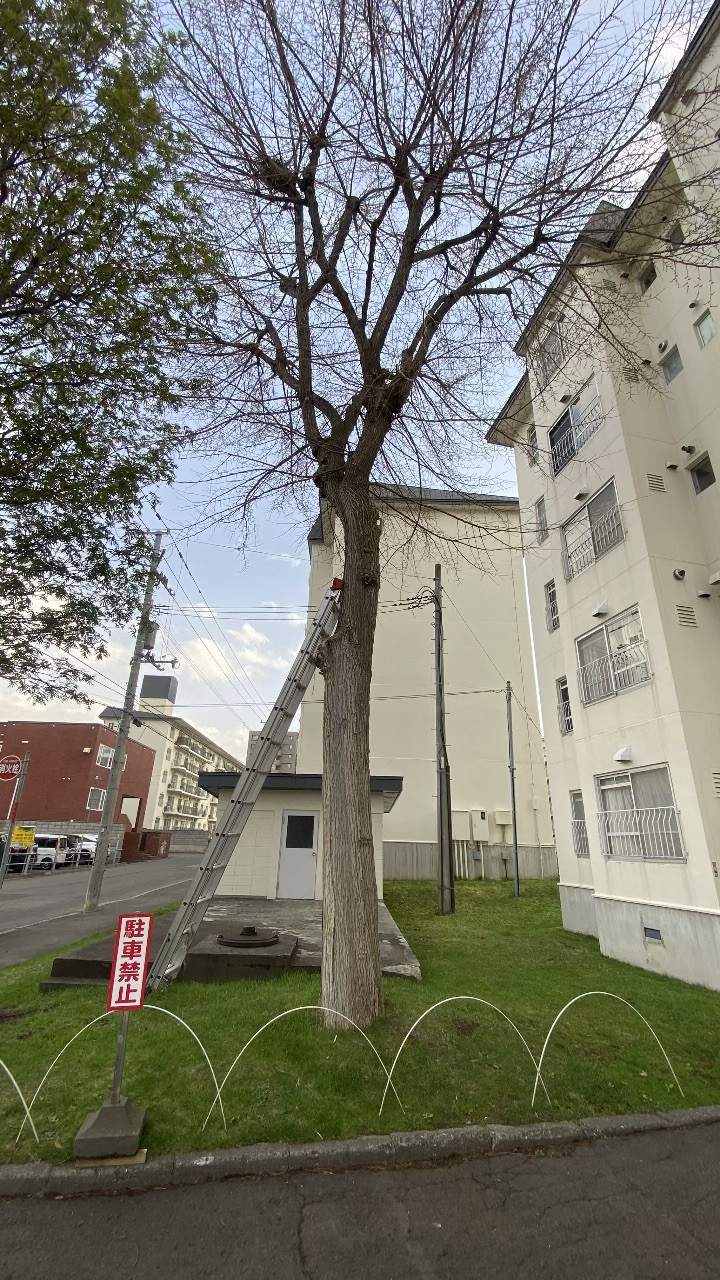 4月も半ばを過ぎ、札幌の街路樹や庭木も少しずつ芽吹いてきました。しかし、この時期に活発になるのが「カラスの営巣(巣作り)」です。
