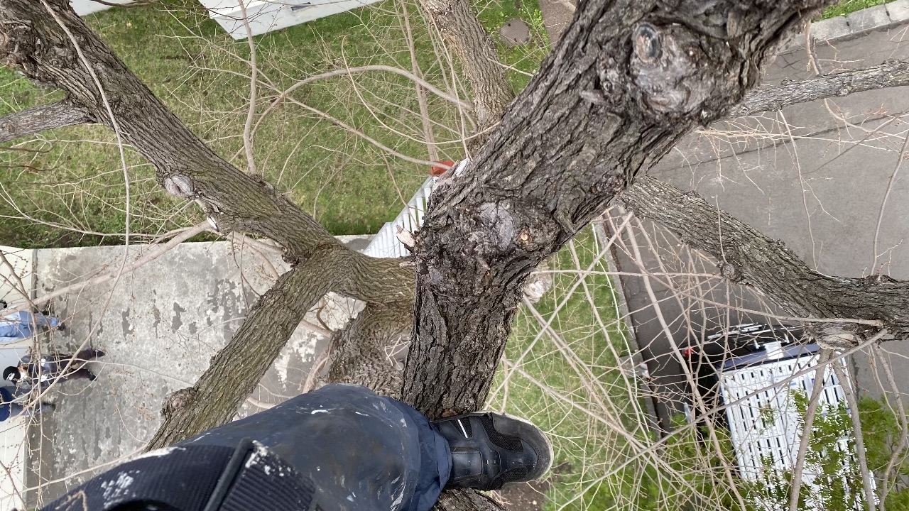 ハシゴで届く範囲を超えた後は、そこから先は「木登り」となります。
