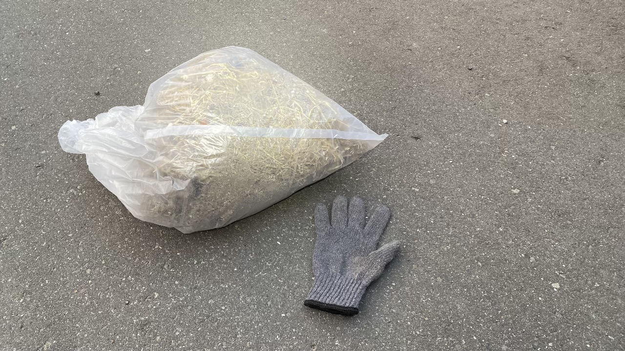 【回収後のゴミ袋。一箇所のフードからこれだけの量が出てきました】